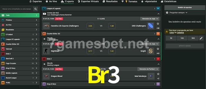 O Br3 oferece uma grande seleção de opções de apostas em e-sports com probabilidades competitivas